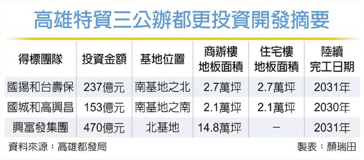國揚集團與台壽合組團隊「星紀元國際」,標得的高雄特貿三「南基地之北」公辦都更案,30日動土,將投資237億元,興建3層商場與兩棟48層住商大樓,預計2031年陸續完工。這是繼興富發、國城團隊之後,「特貿三」公辦都更最後一個動工的工程,高雄副市長林欽榮表示,十年磨一劍,終於迎來總投資額共達860億元的「特貿三」公辦都更全面動工,開啟高雄亞灣區開發新篇章。